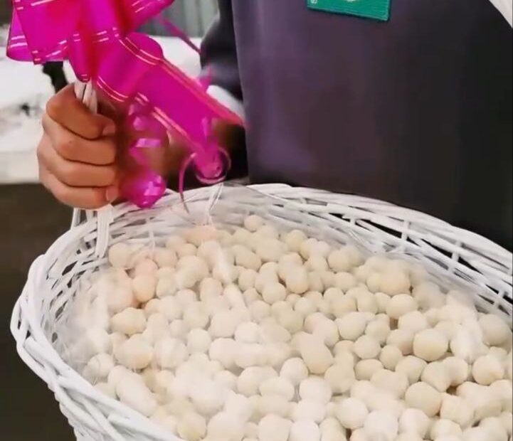 Этот курт имеет особую историю. Несколько дней назад представители более чем 30 этносов региона объединились, чтобы вместе изготовить национальное угощение. Итогом коллективного труда стали 4546 штук курта, что стало официальным рекордом страны. Организаторы решили, что этот символ единства должен принести реальную радость, и направили его тем, кто особенно нуждается в заботе.