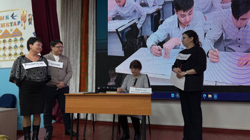 Жиын соңында мектеп психологы ата-аналармен практикалық тренинг өткізді. Онда қатысушылар баламен сенімді қарым-қатынас орнатудың әдістерін іс жүзінде қолданып көрді.